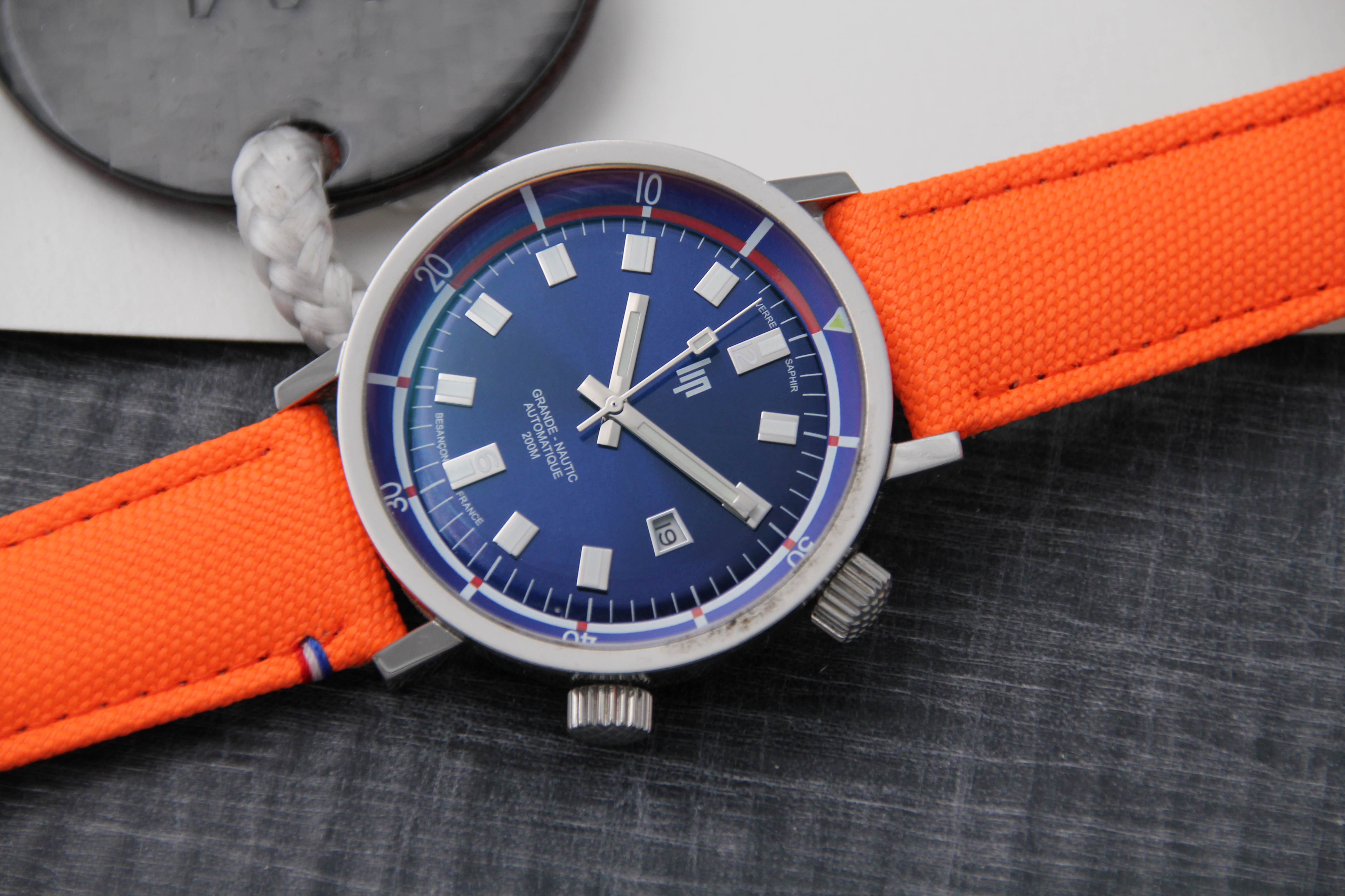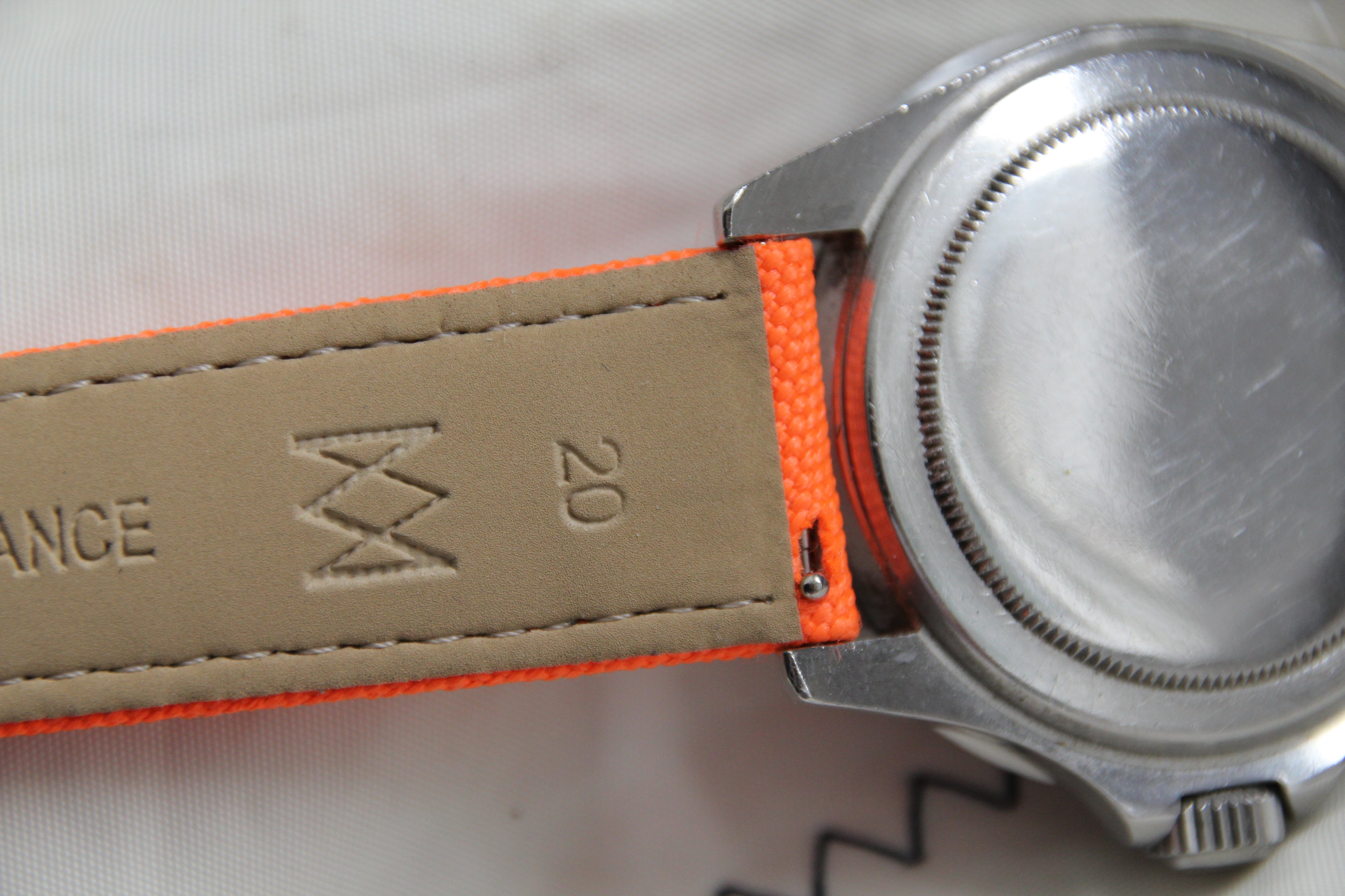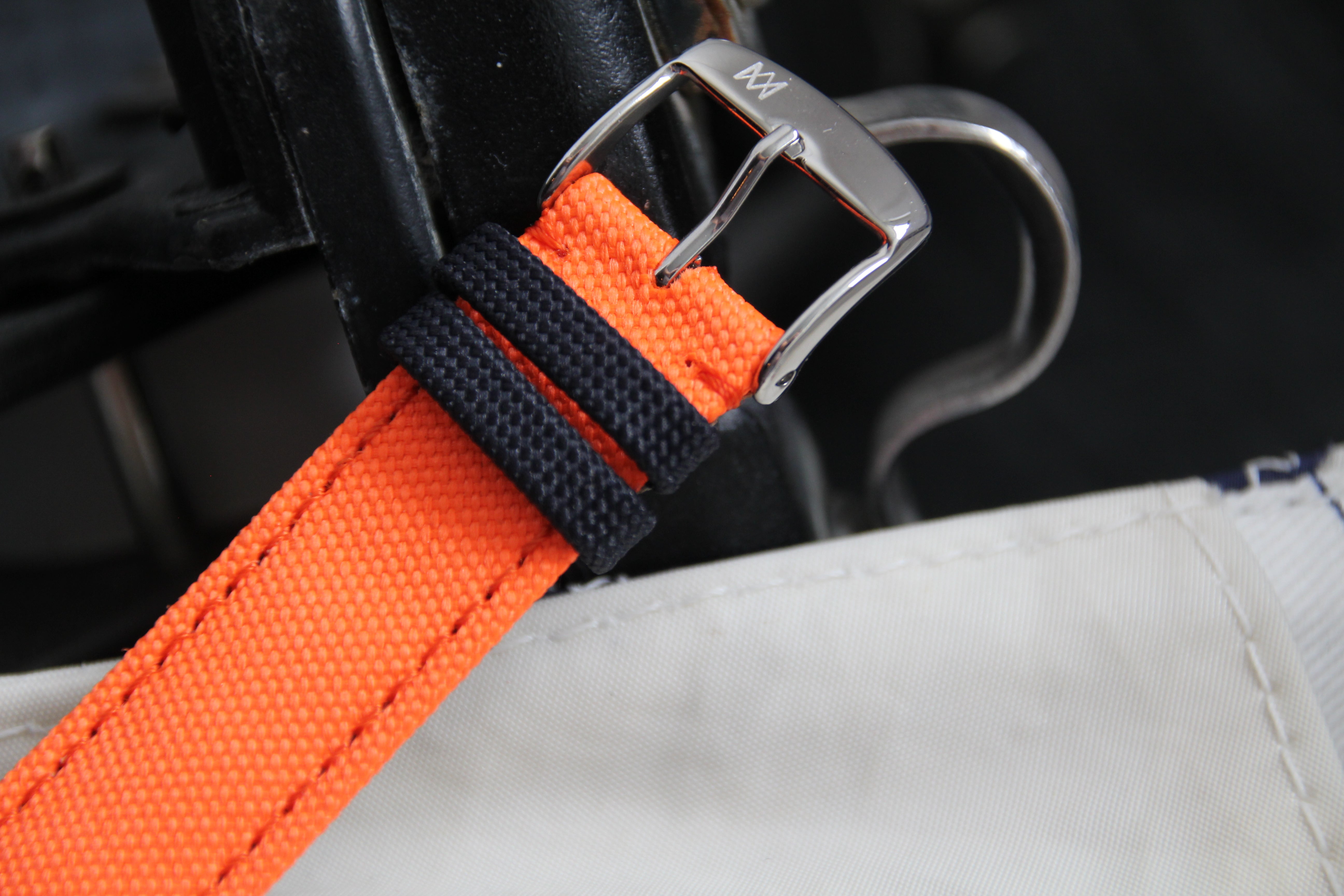 Nous avons travaillé sur une V2 de ce bracelet SNSM afin qu'il soit résistant à l'eau et donc qu'on puisse s'en servir pour la baignade. Ainsi les passants sont en toile, et la doublure en microfibre. A vous les bains de mer bretons avec votre montre au poignet !