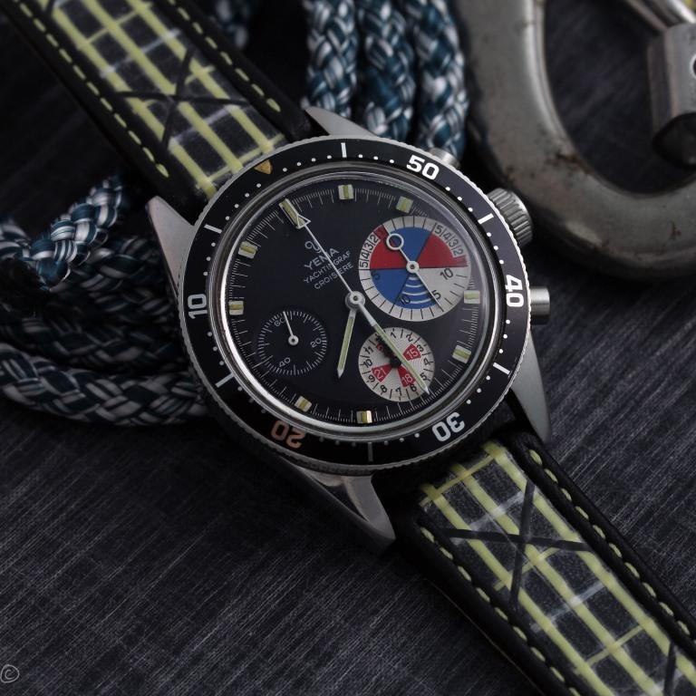 Yema avait fait un partenariat avec l'équipe de France de voile Olympique dans les années 70 ! Il est logique de vouloir porter une Yachtingraf avec un bracelet en toile de voile carbone Hyères ou en toile kevlar La Rochelle!